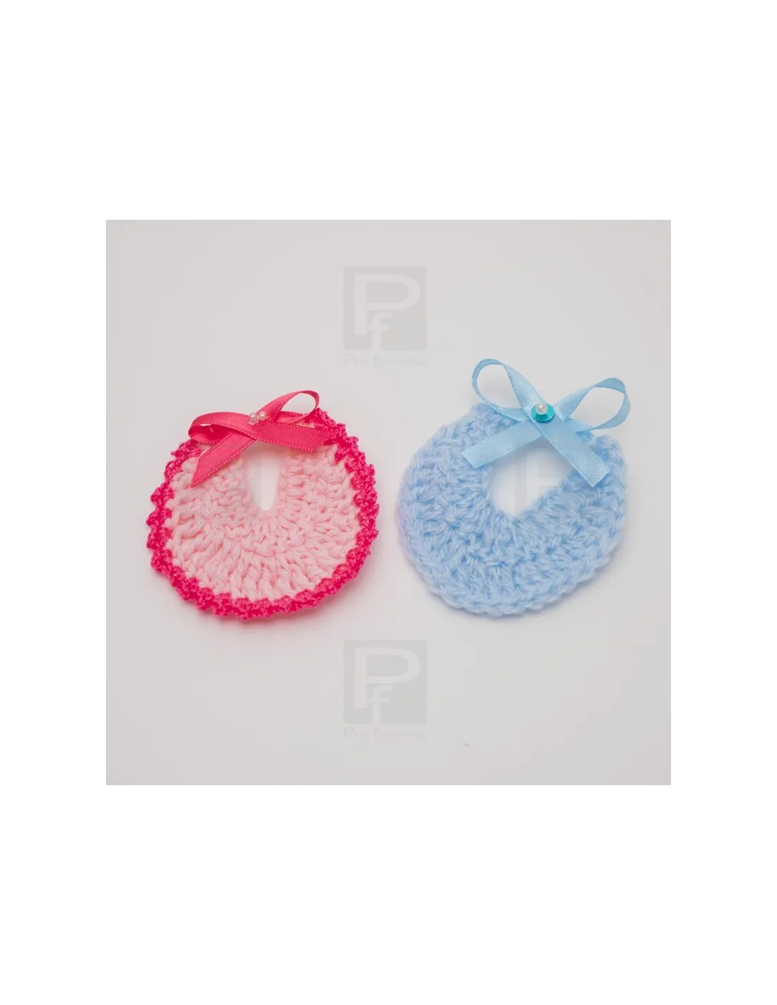 Babero realizado en croché a mano, para adorno de recordatorio en regalos de nacimiento, new born o bautizo.