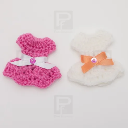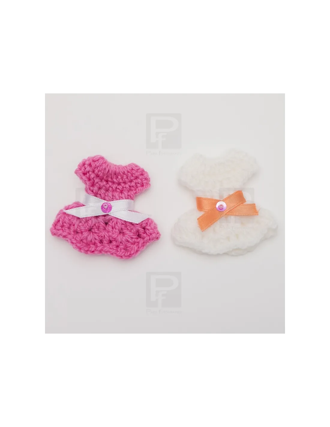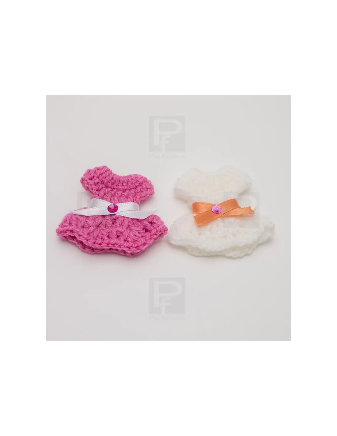 Disponible Adornos croché Vestidito tull Parafotografos D11 1,05 € Detalles para adornar o regalar en eventos realizados a mano en croché de tamaño aproximado de 7-8 cm.