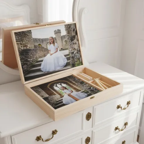 Presenta, protege y muestra tus trabajos de forma elegante y duradera con cajas de madera para álbum. 💼📷
