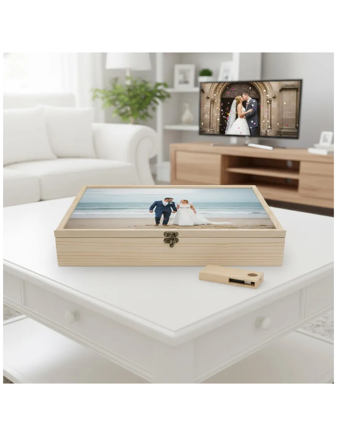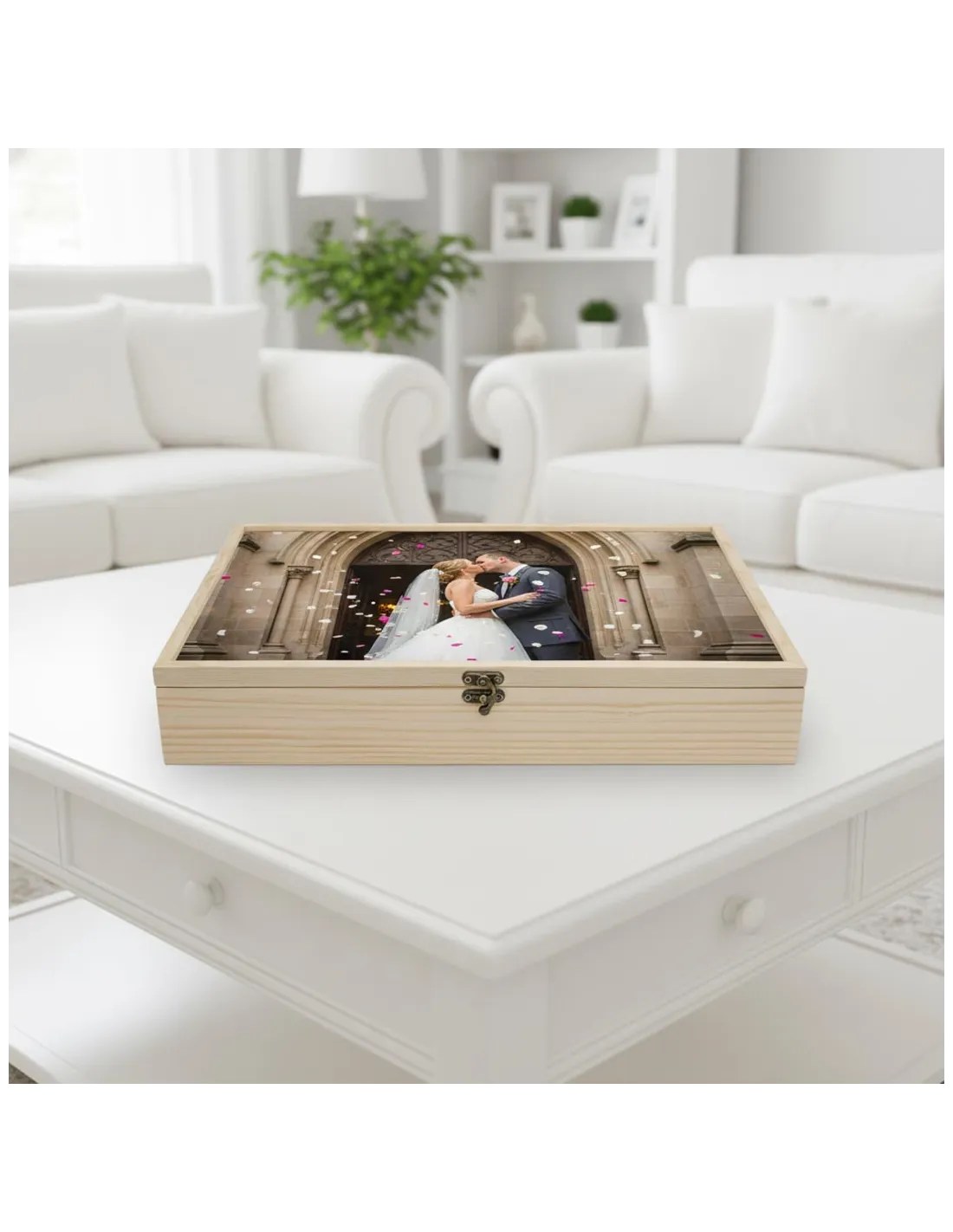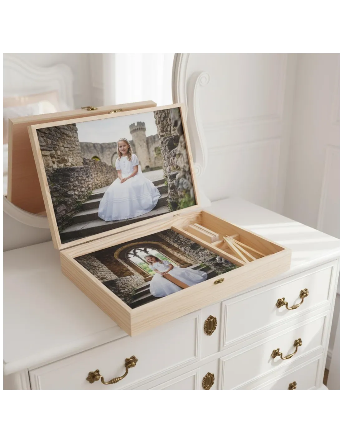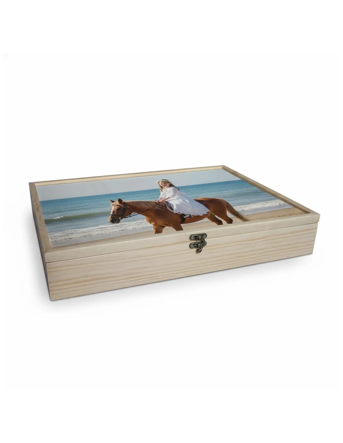 Caja de madera para álbum en pino natural.