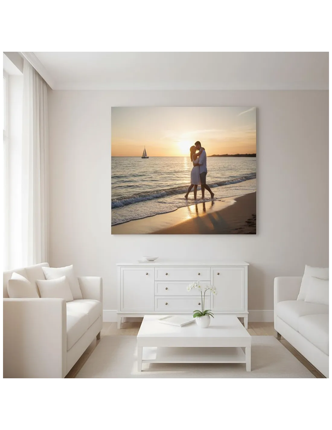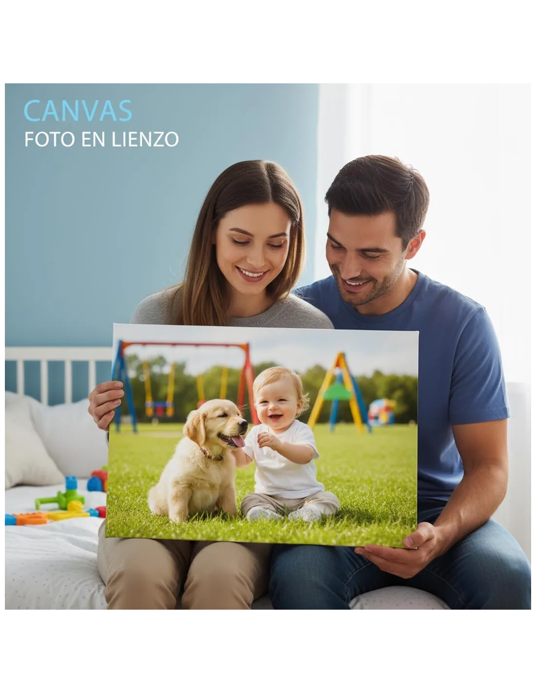 Transforma tus recuerdos en una obra de arte. Imprimimos tu fotografía en canvas de alta calidad, impresión directa sobre lienzo (tela) y la montamos sobre un bastidor de madera de 2 cm, con los cantos forrados para un acabado continuo y elegante. Cada pieza se barniza para protegerla del polvo, la humedad y la radiación UV, garantizando colores vivos y duraderos.
