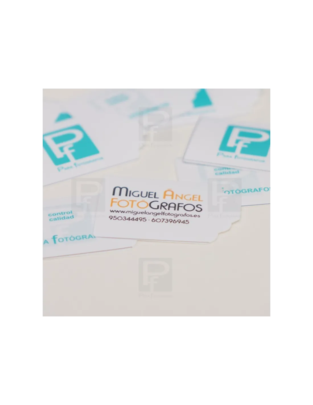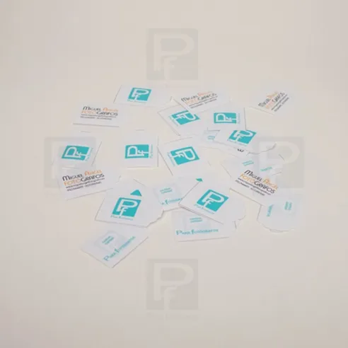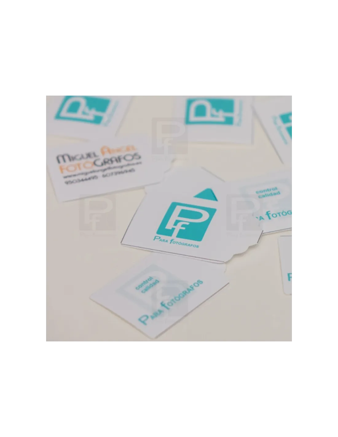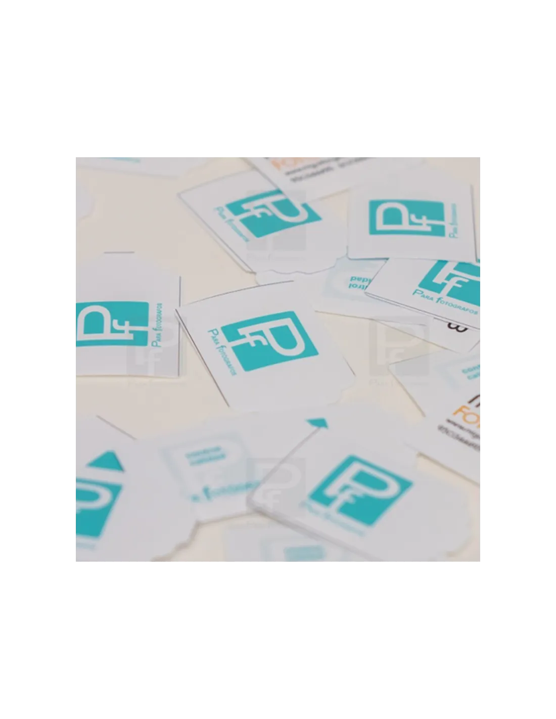 Tamaño 4,5x3cm con forma troquel etiqueta, papel 250gr.