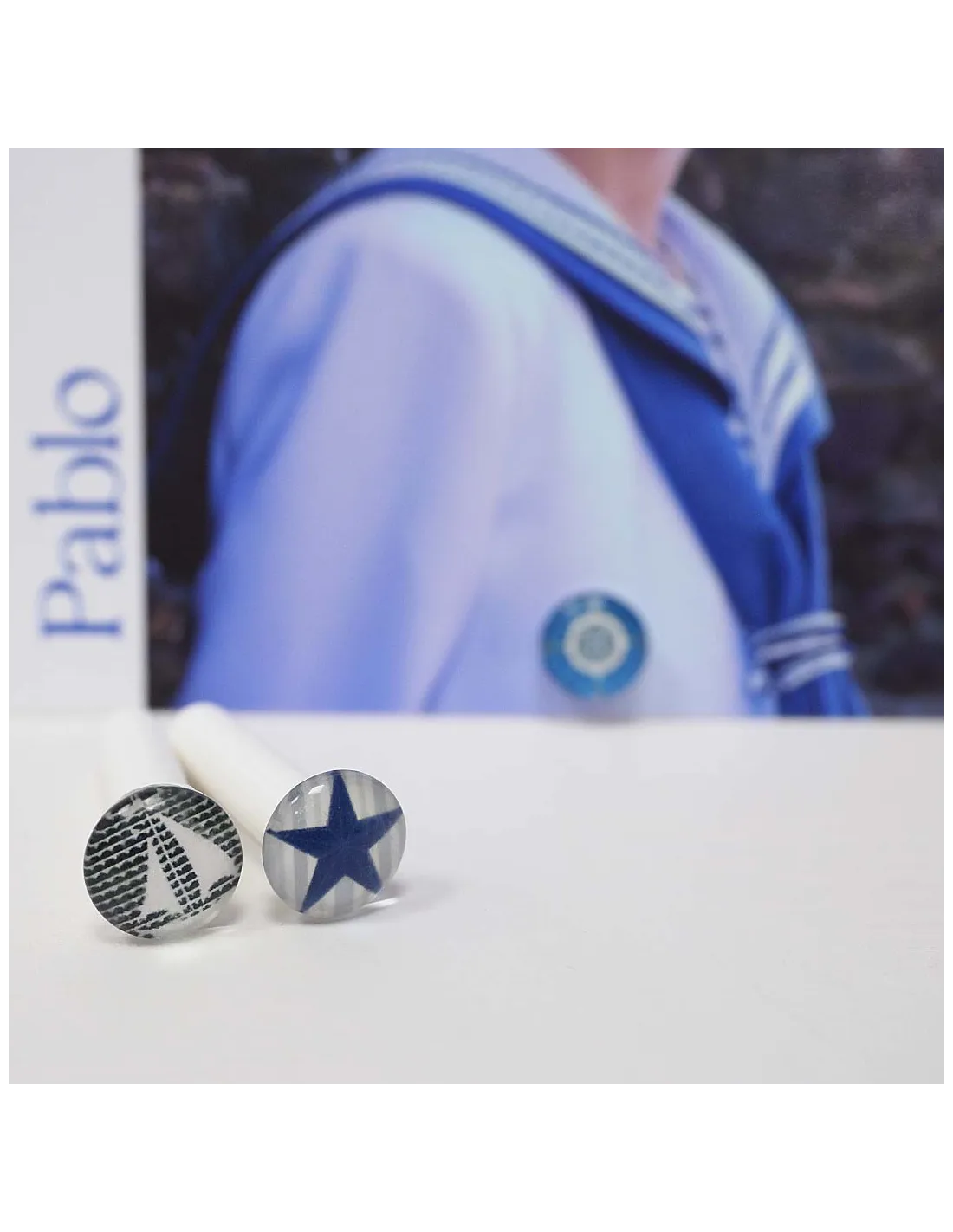 Es un soporte patentado y diseñado por nosotros, que sostiene tus láminas o fotografías de pie con un sistema muy sencillo de dos piezas. Solo haces un pequeño agujero, lo enroscas… y tu recuerdo queda listo para lucirse, incluso por las dos caras.