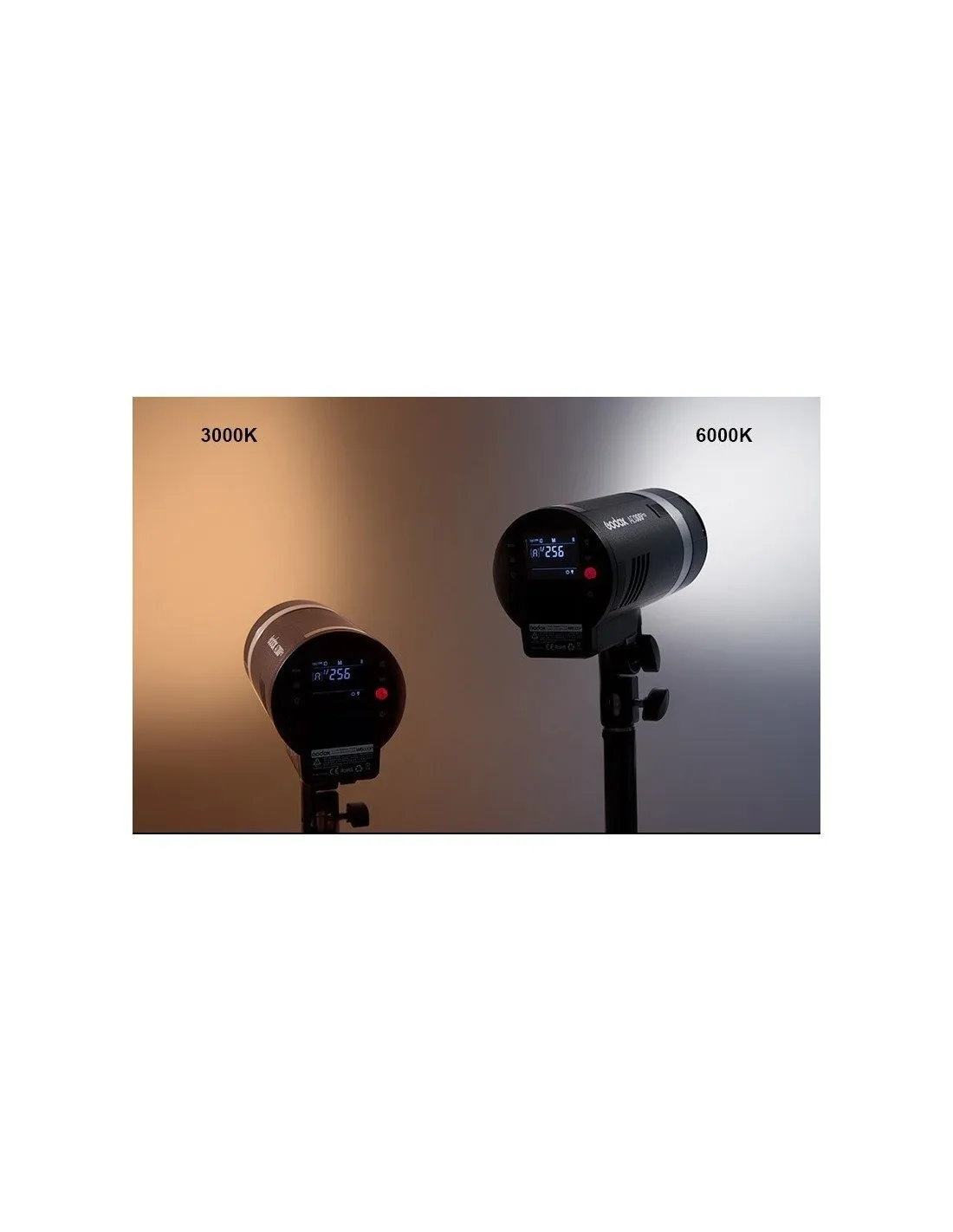 En este caso tenemos un flash de altas prestaciones alimentado con una batería de litio, con 300W de potencia y un peso de 1250grs (750grs menos que el AD400Pro) y 3cm más pequeño.