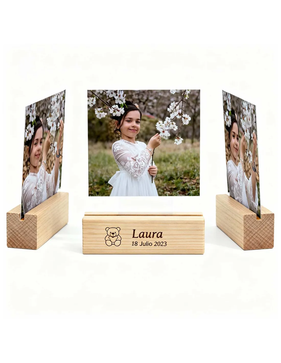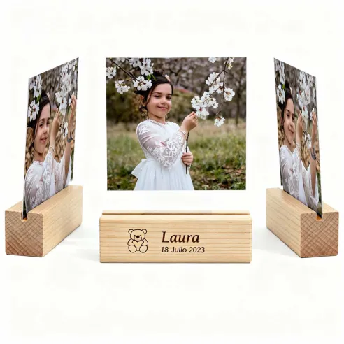 - Con taco de madera grabado a láser o sin grabar de 10cm