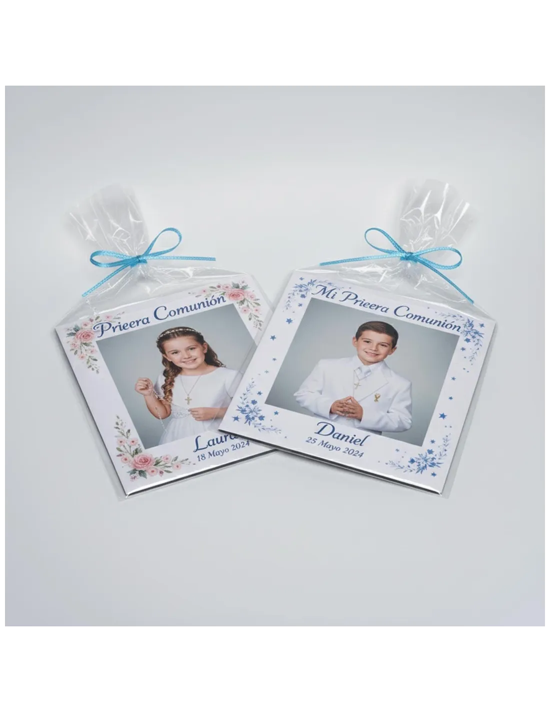 Recordatorios comunión o bautizo tamaño 13 x 13 con Portaláminas