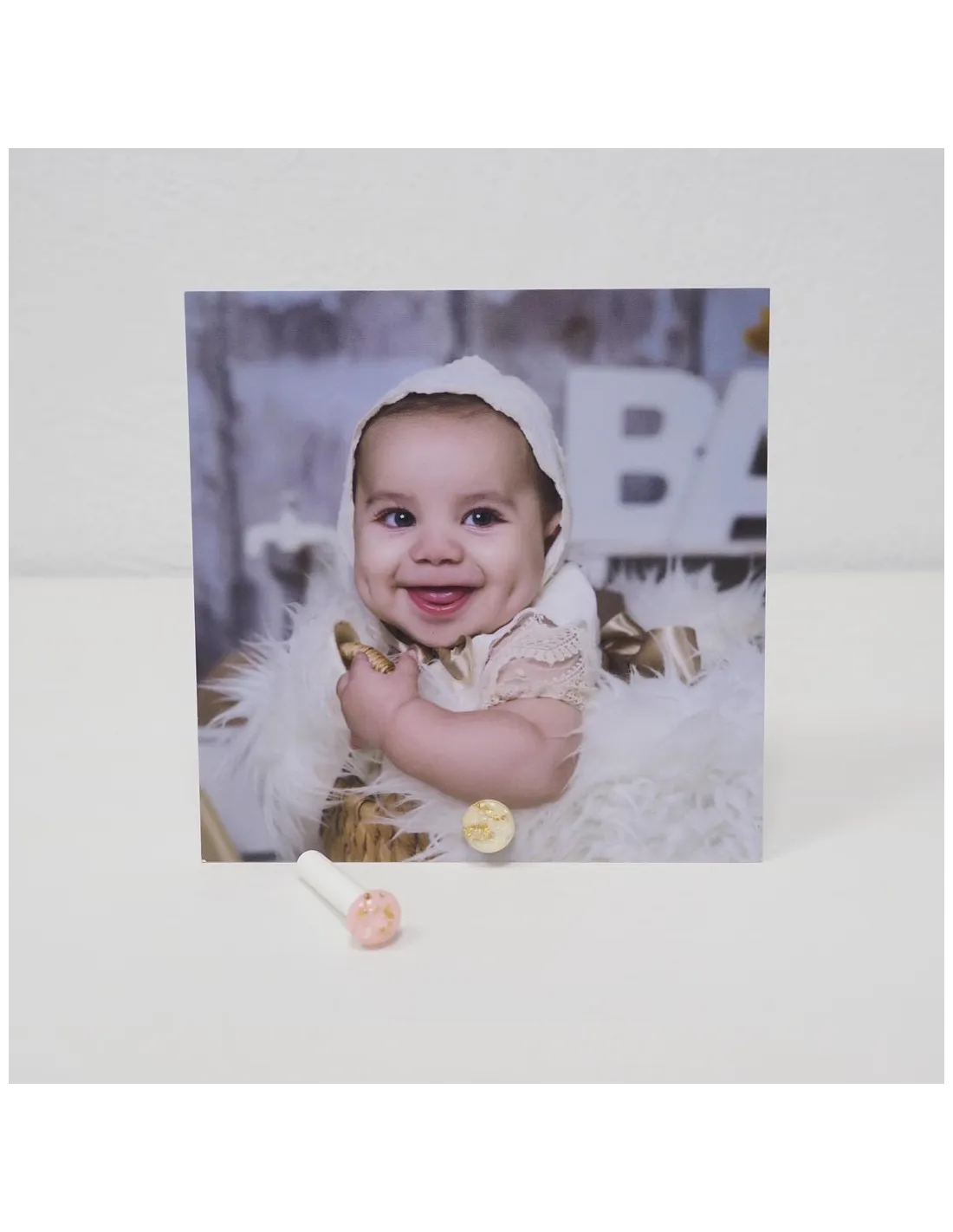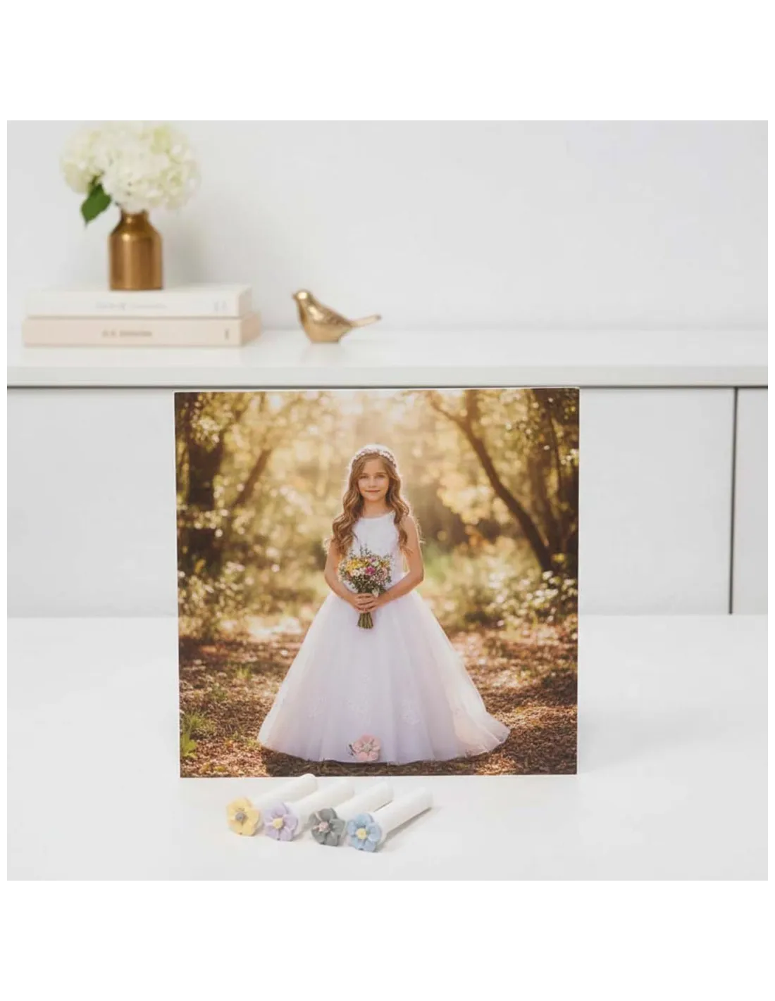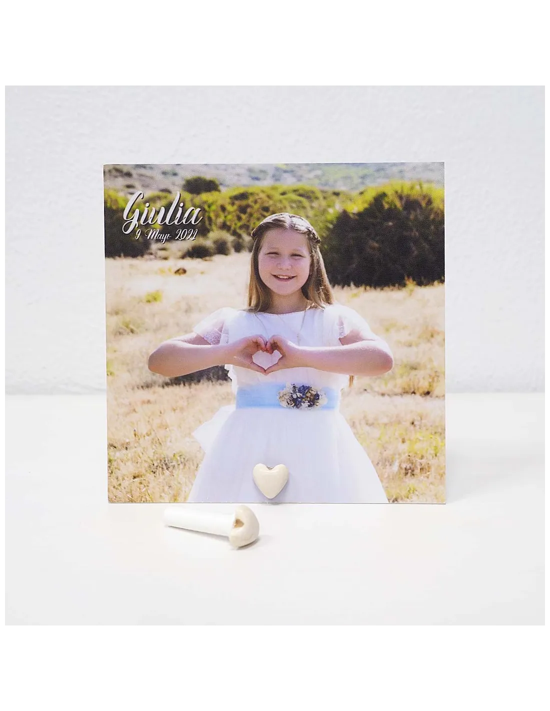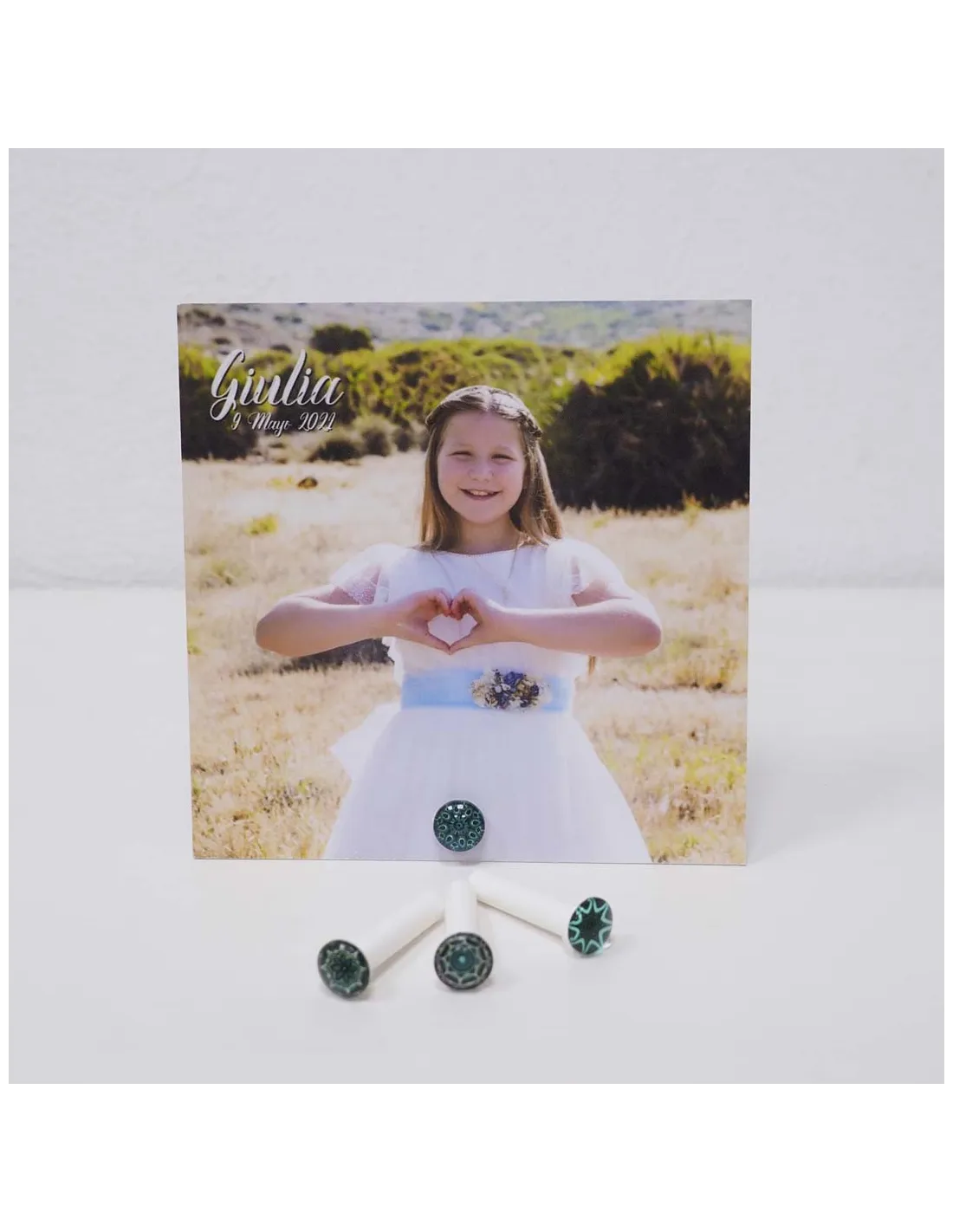 Nuestros recordatorios de comunión o bautizo en formato 13 x 13 cm combinan diseño, calidad y una presentación muy especial.