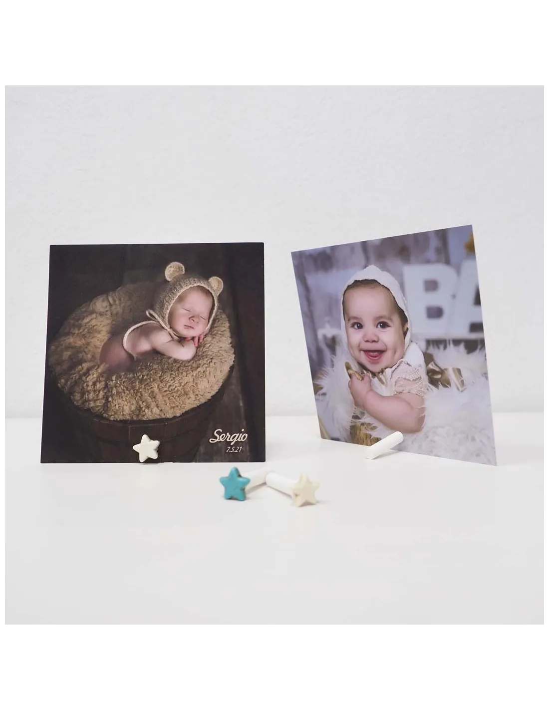 El Portaláminas para fotos es un soporte decorativo patentado, creado por Parafotógrafos, que permite mantener de pie tus fotografías, recordatorios o láminas de forma elegante y sencilla. Está formado por dos piezas que se unen roscándose, manteniendo la fotografía entre ellas de forma firme y en vertical. Al girarlo, puedes mostrar la imagen por la otra cara, ideal para recordatorios a doble cara. Fabricado en material reciclable.