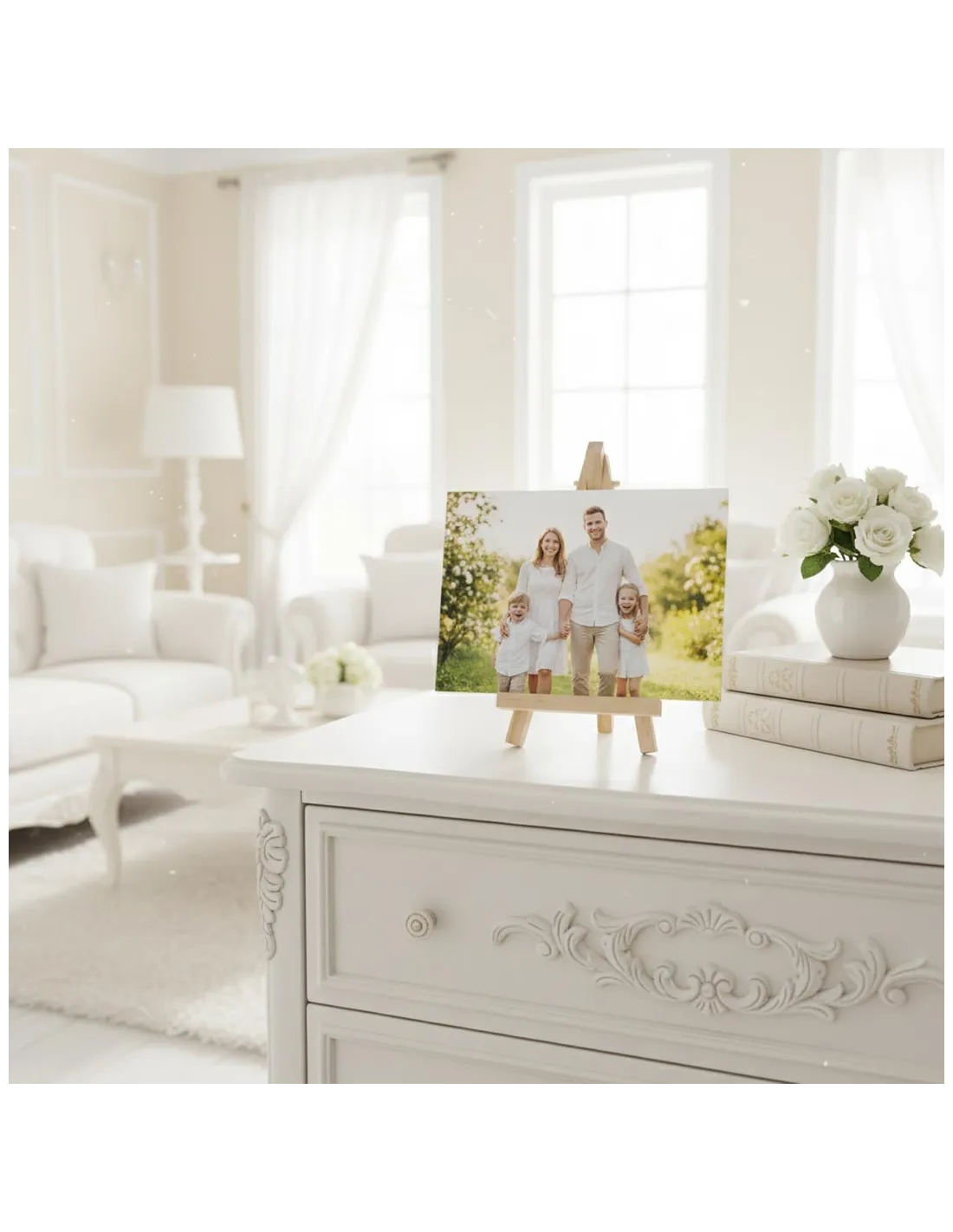 Este soporte caballete de madera es la solución perfecta para exhibir tus fotografías, láminas o recordatorios de forma elegante y natural. Con un tamaño compacto de 8 cm de ancho por 15 cm de alto, es ideal para destacar imágenes de hasta 20x15 cm, tanto en formato horizontal como vertical. Su diseño sencillo y atemporal se adapta a cualquier estilo, aportando calidez y un toque artesanal a tus espacios.