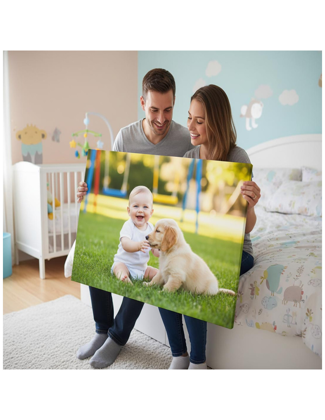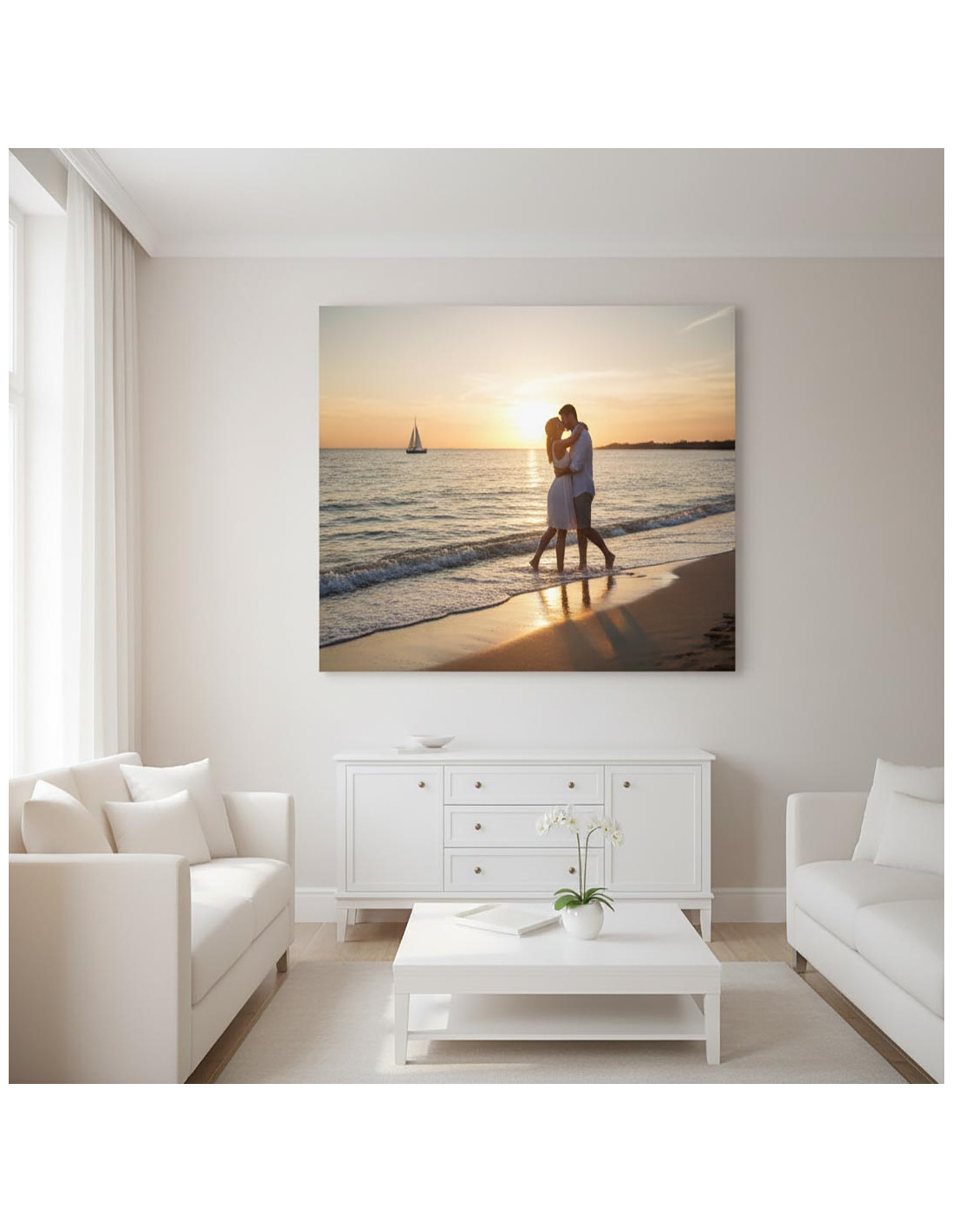 Transforma tus recuerdos en una obra de arte. Imprimimos tu fotografía en canvas de alta calidad, impresión directa sobre lienzo (tela) y la montamos sobre un bastidor de madera de 2 cm, con los cantos forrados para un acabado continuo y elegante. Cada pieza se barniza para protegerla del polvo, la humedad y la radiación UV, garantizando colores vivos y duraderos.