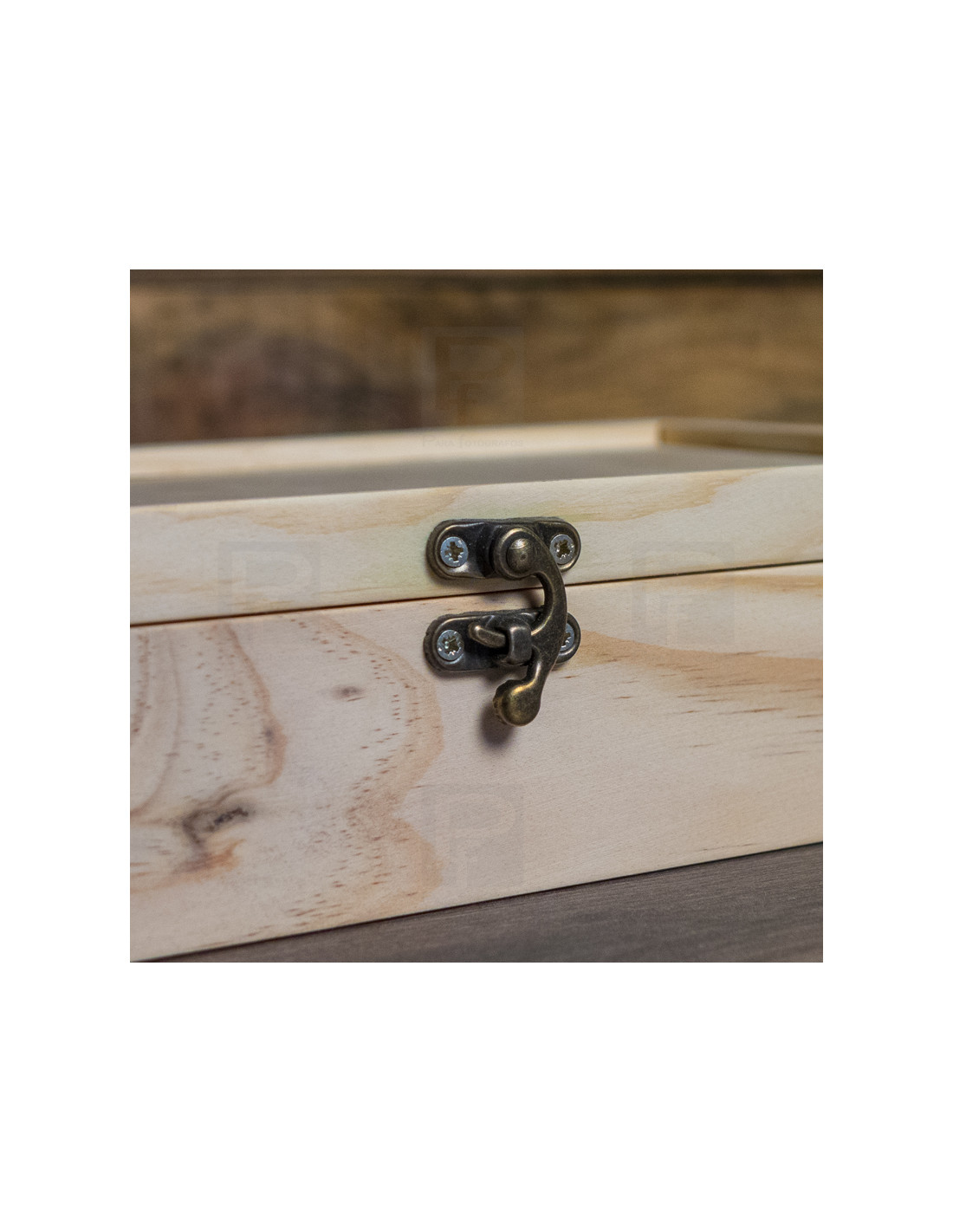 - Presentación premium: caja abatible en madera pino natural con bisagras y cierre de alta calidad. 🔒