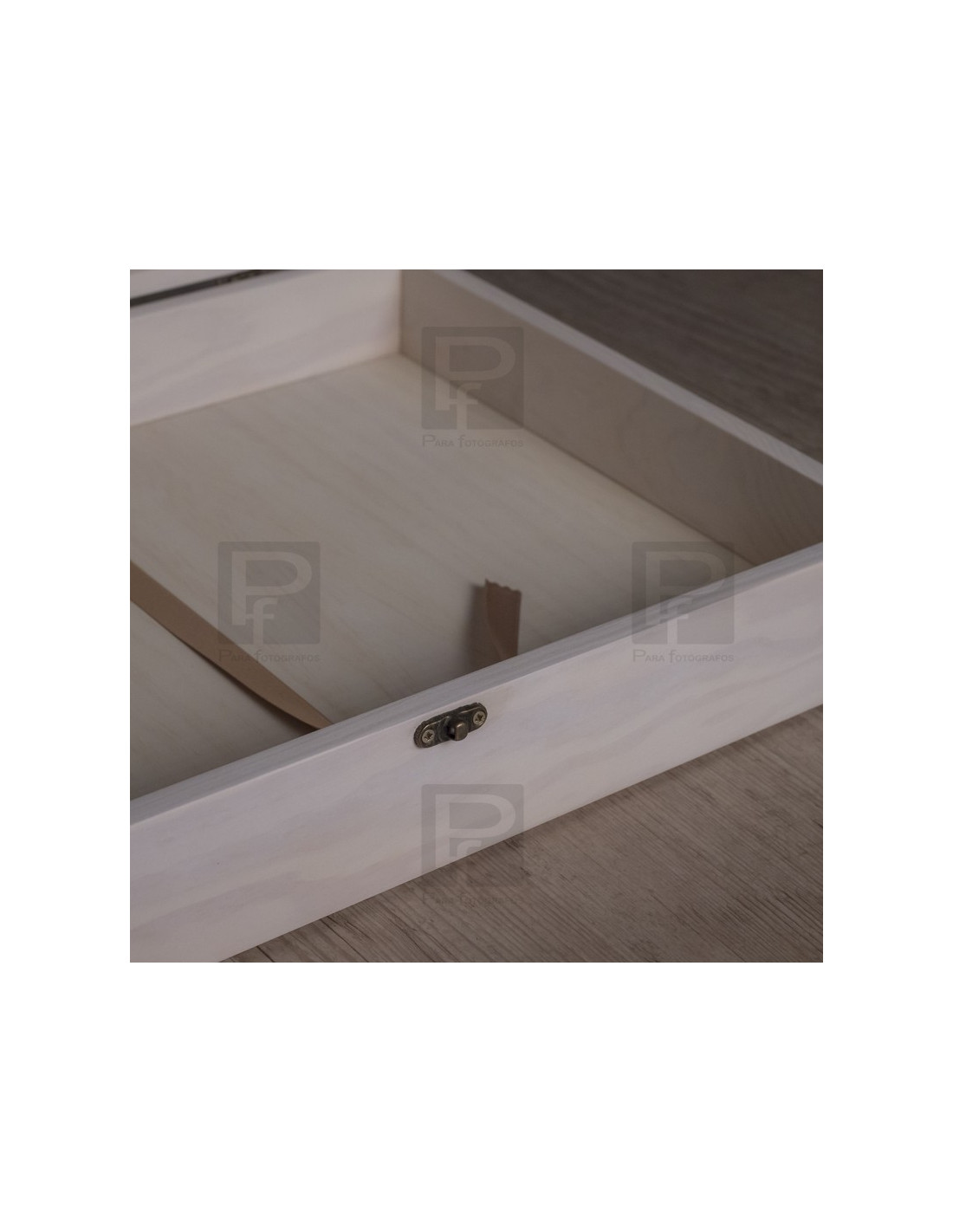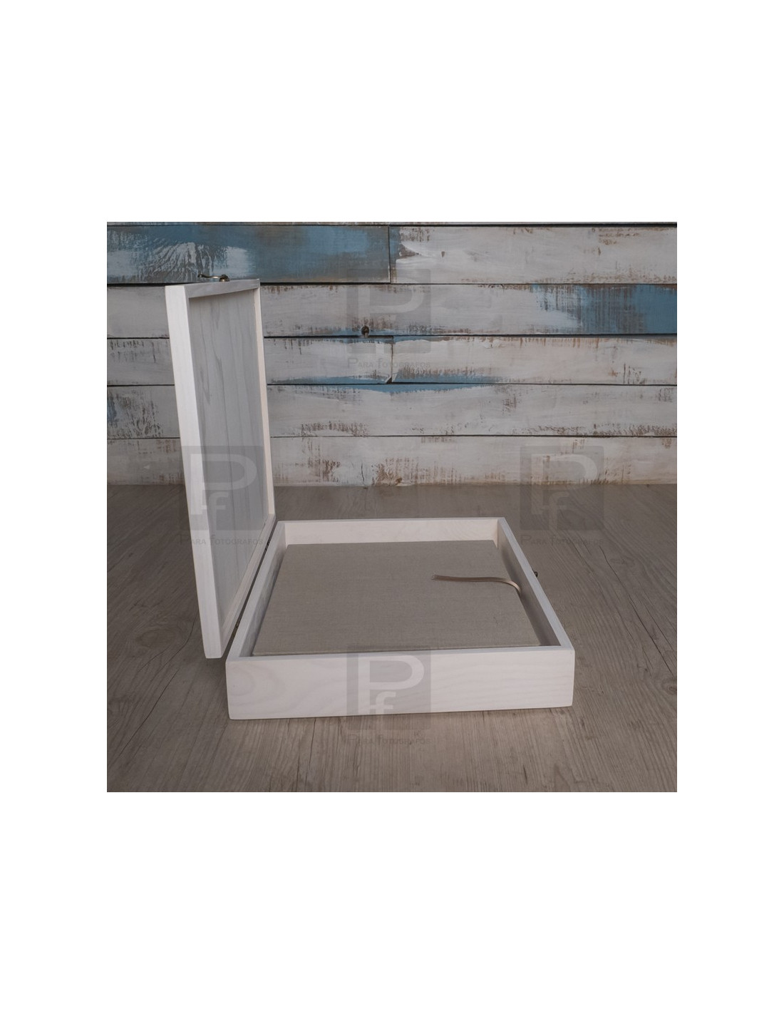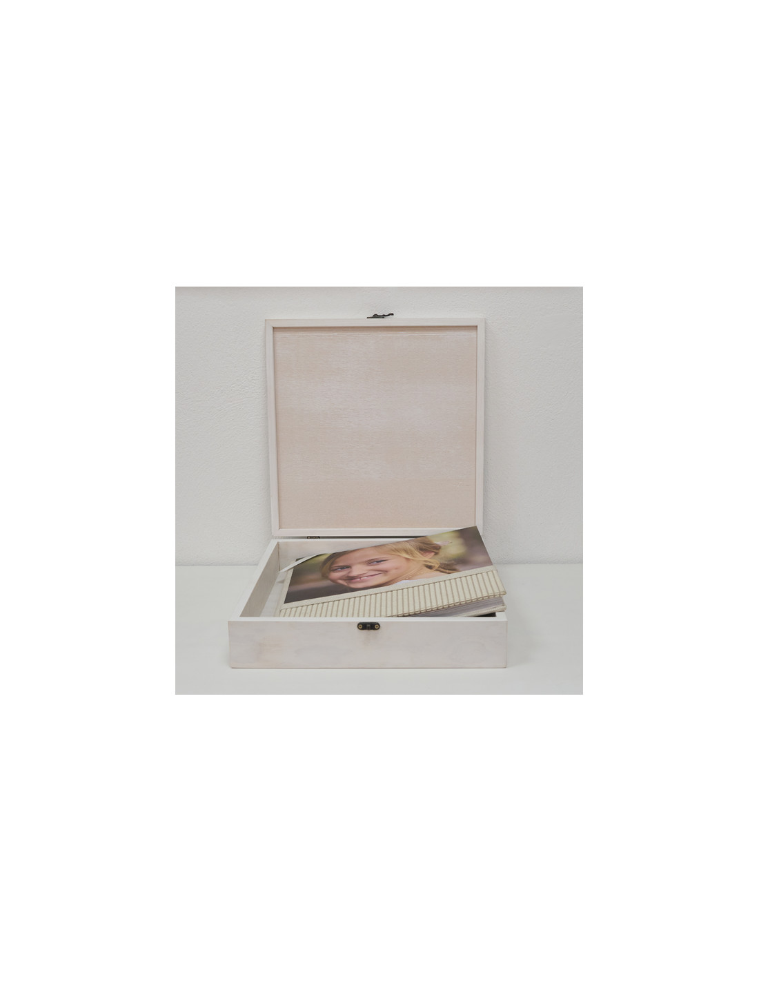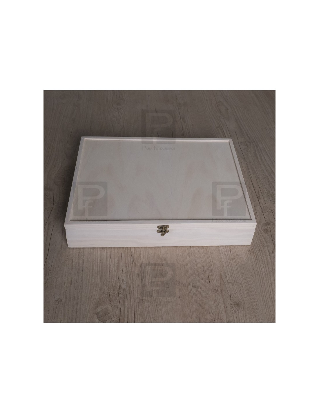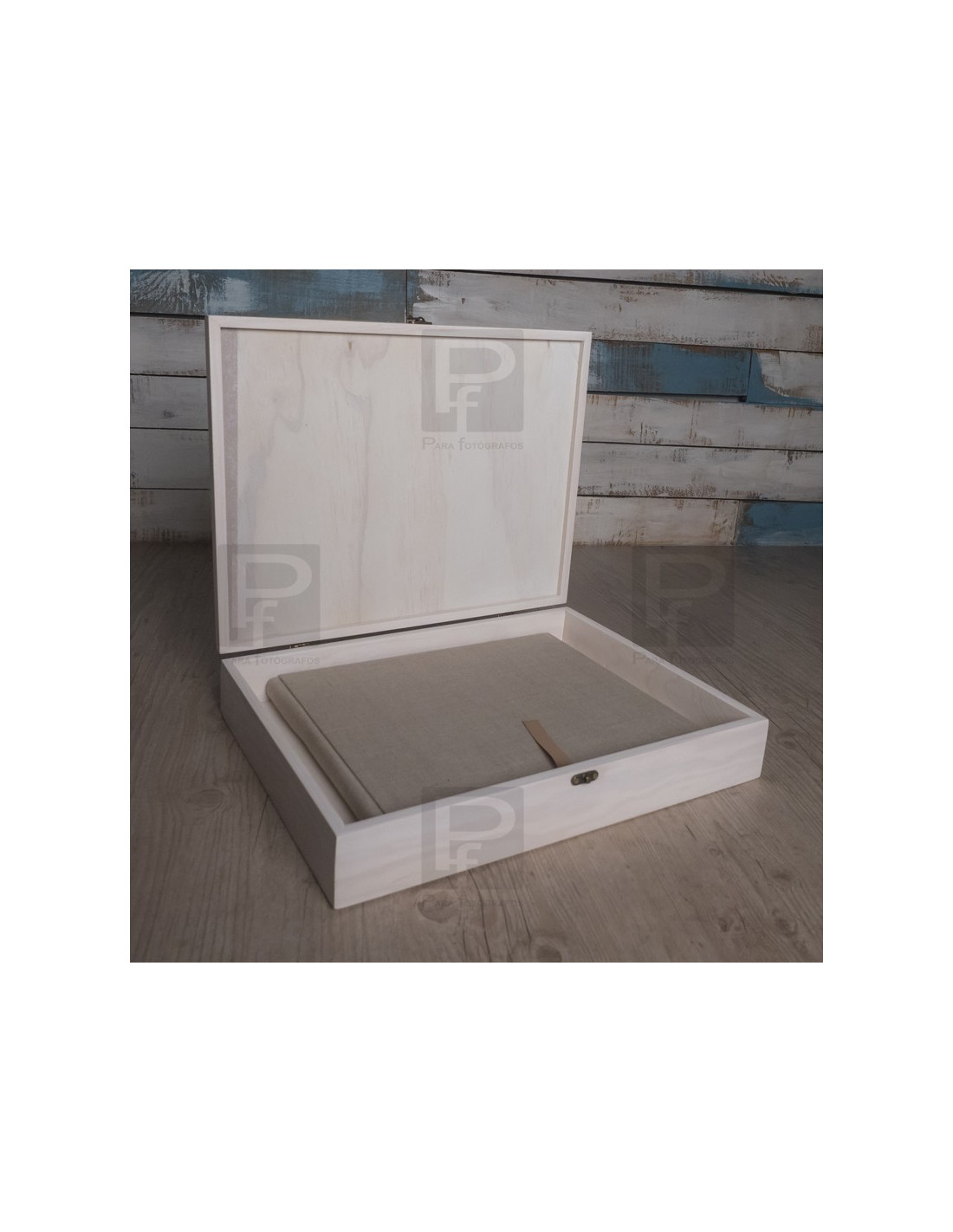 Caja de madera rectangular abatible para guardar álbum de hasta tamaño 30x30.