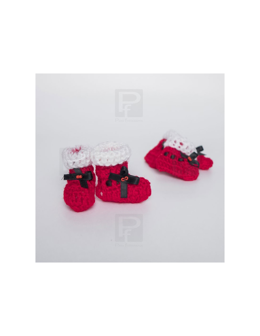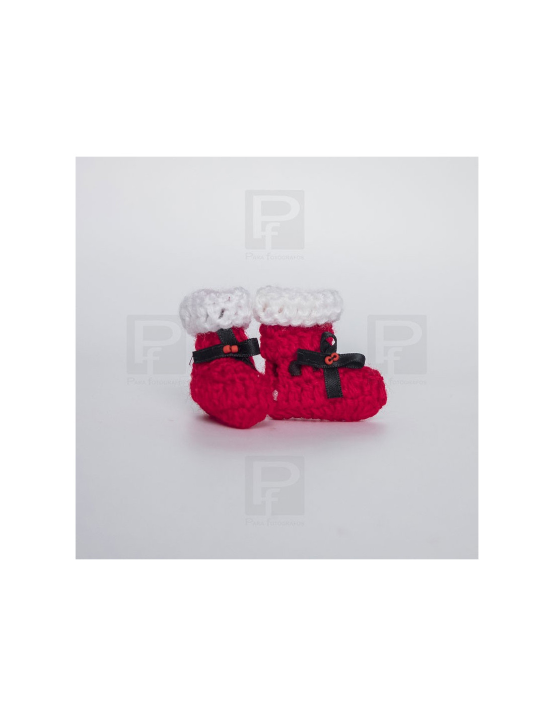 Botita realizada en croché a mano, para adorno de las Cajas o entregas de recuerdos de regalos en navidad, de tamaño aproximado entre 5 y 6 cm.